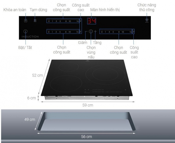 Kích thước khoét đá 560-490mm (dài*sâu)