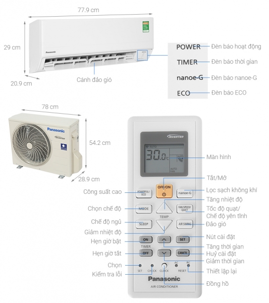 Kích thước dàn lạnh (RxSxC): 290 x 779 x 209