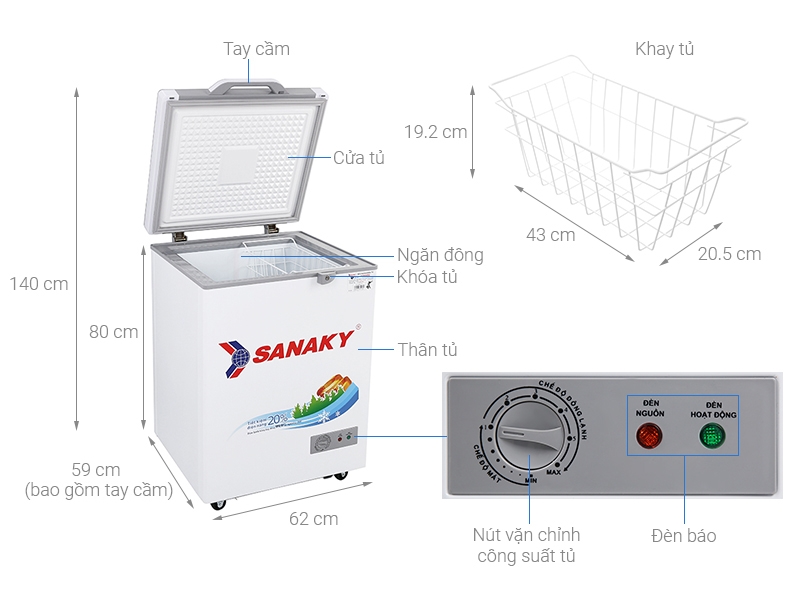 100 lít - Ngăn mát Không có - Ngăn đông 100 lít