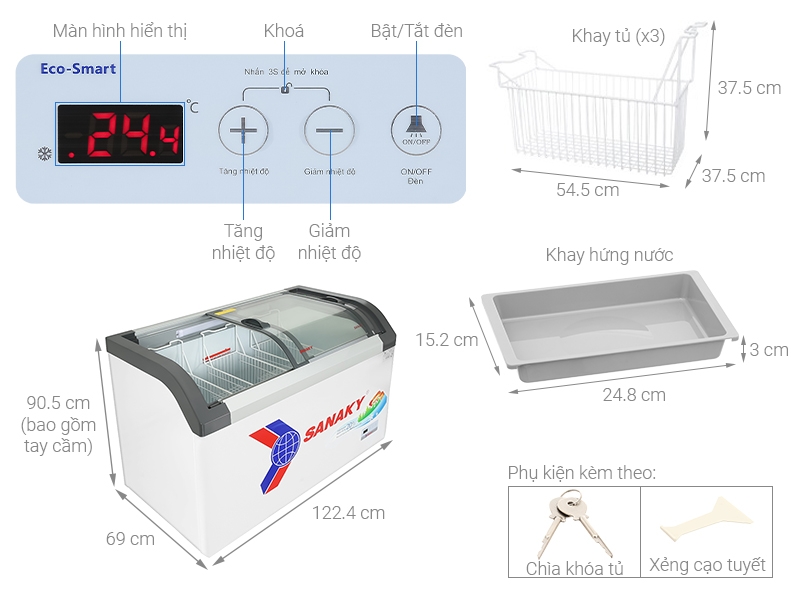 Kích thước tủ 1224 x 690 x 870 (DxRxC mm)