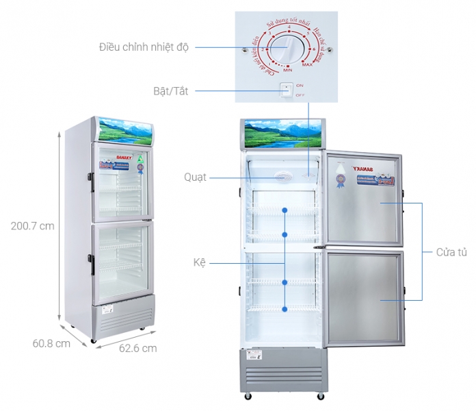 Kích thước sản phẩm: Dài 615 mm - Rộng 610 mm - Cao 1985 mm