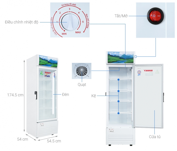 Kích thước tủ 535 x 540 x 1775 (DxRxC mm)