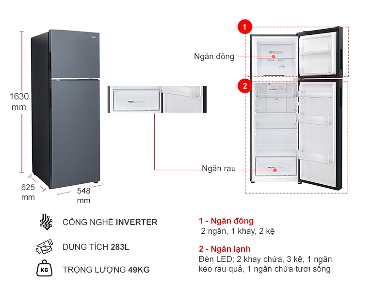 Dung tích sử dụng: 283 lít