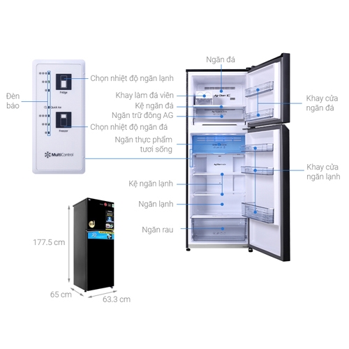 Kích thước tủ lạnh: Cao 177.5 cm - Rộng 63.3 cm - Sâu 65 cm - Nặng 66 kg