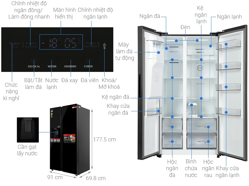 Kiểu tủ: Tủ lớn - Side by Side - 2 cánh